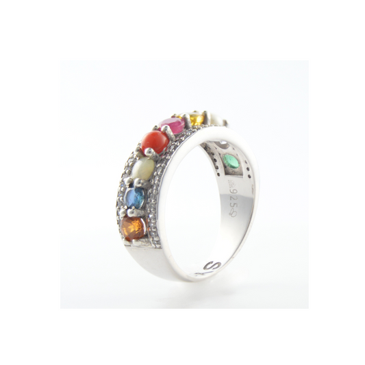 Nine Jewels Half Eternity Ring in Sterling Silver